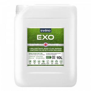 EXO is ideal for use in a wheel to wheel marker to create sports pitches on grassed areas such as football pitches and rugby fields. This long lasting, water based paint is ready to use neat, although it can also be mixed with water at a ratio of 1:1 if required.